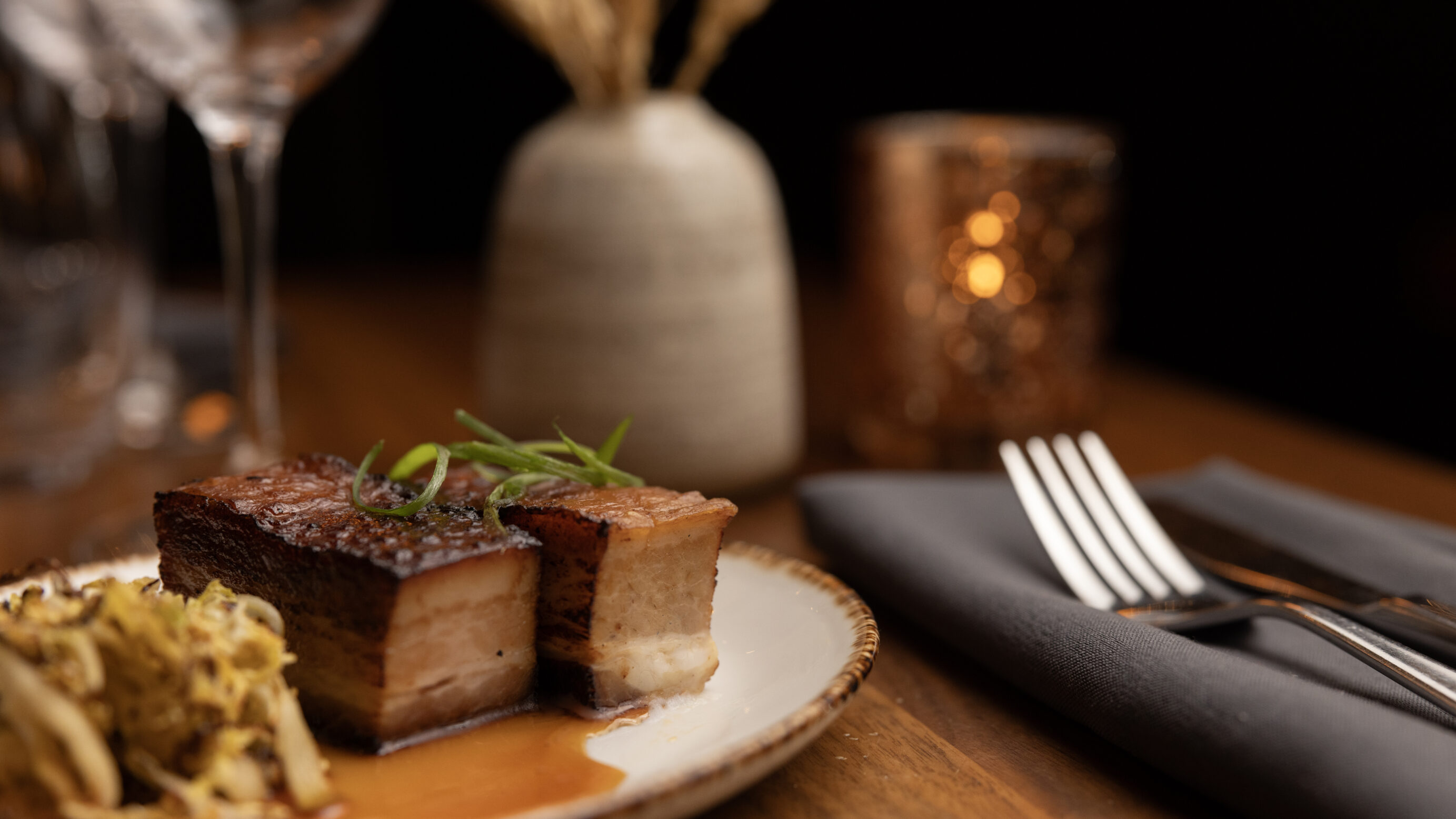 sweet potato purée, local baby beets, fennel salad, black garlic-orange sauce